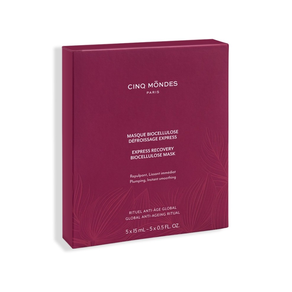 Issu du savoir-faire professionnel du Spa Cinq Mondes et de l’extrême technicité de son Soin Massage anti-âge japonais « Ko Bi Do », le Masque Biocellulose Défroissage Express lisse les traits et améliore l’aspect de la peau comme après une bonne nuit de sommeil.